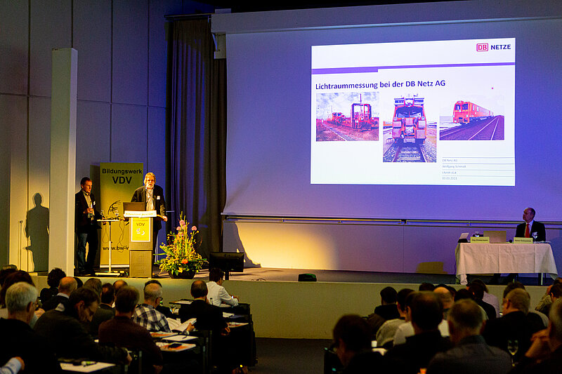 Marcel Jäckle und Wolfgang Schmidt (beide DB Netz AG) widmeten ihren Doppelvortrag dem Thema Lichtraummessung bei der Deutschen Bahn.