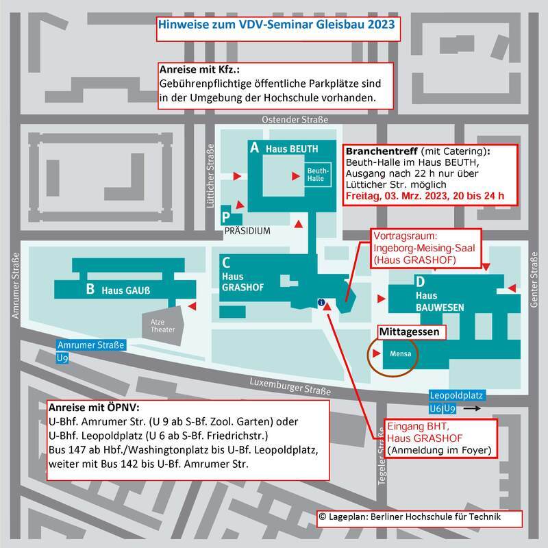 Die Fachgruppe 11 „Gleisbau“ vom BILDUNGSWERK VDV e. V. veranstaltete dieses Seminar in Berlin zum 23. Mal. Tagungsort war wiederum die Berliner Hochschule für Technik (BHT), vormals Beuth Hochschule für Technik. Das Interesse der Fachwelt war nach zwei Jahren online-Seminar sehr groß. Die rund 240 Teilnehmer von der Deutschen Bahn AG, Nahverkehrsunternehmen, Planungs- und Ingenieurbüros sowie weiteren Einrichtungen und Firmen kamen aus dem In- und Ausland (darunter zwei Referenten aus Österreich). So musste die Anmeldung bereits Mitte Februar geschlossen werden, da die Kapazitätsgrenze des Seminars erreicht war. Der Ingeborg-Meising-Saal war wieder gut gefüllt (Abb. 1).
