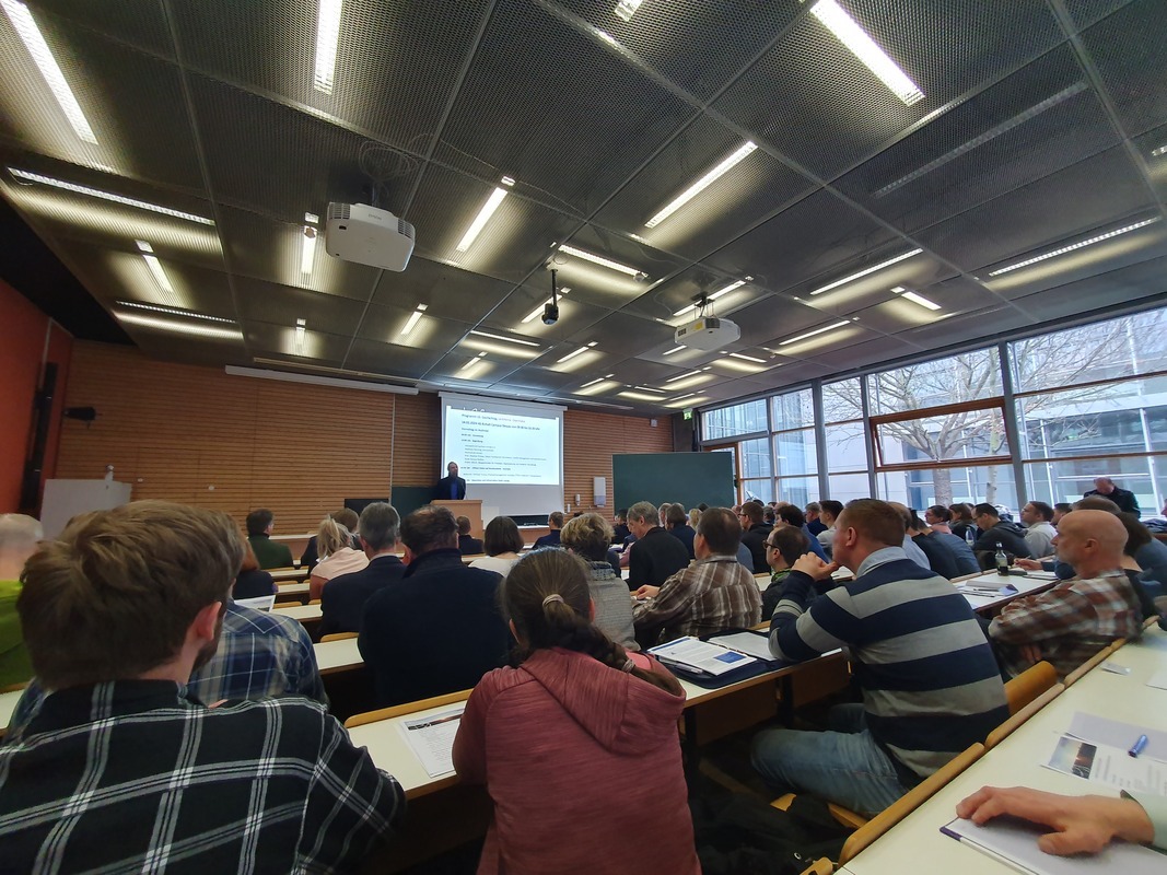 Da man noch krisenbedingt im Jahr 2022 einen Termin im September und damit mit hohem Sonnenstand favorisierte, um möglichst niedrige Fallzahlen verzeichnen zu können, war das Bestreben des Vereins nach der Pandemie wieder auf den klassischen Termin Mitte Februar zu setzen. Im Jahr 2024 wurde es dann der Valentinstag, zu dem man die regionale (Geo-) Branche von Mitteldeutschland nach Dessau-Roßlau einlud. Ca. 200 Teilnehmer und etliche Aussteller sind diesem Ruf gefolgt und fanden sich pünktlich im audimax der Hochschule Anhalt am Campus in Dessau ein. Fast alle Sitzplätze im größten Hörsaal waren belegt. Neben den Berufskollegen fanden sich auch eine umfangreiche Anzahl von Nachwuchskräften und Studierenden der Hochschule zum Fachtag ein.