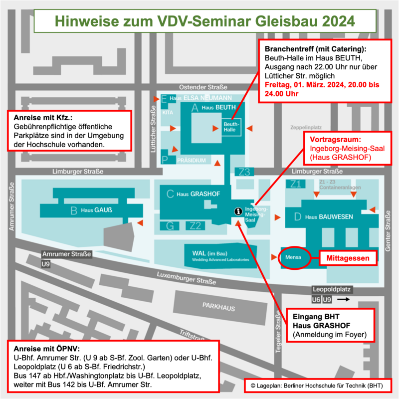 Am 01./02.03.2024 ist das Fortbildungsseminar BW-11124 „Gleisbau 2024“ als Präsenz-Veranstaltung der Fachgruppe 11 (Gleisbau) des BILDUNGSWERK VDV in Berlin geplant.