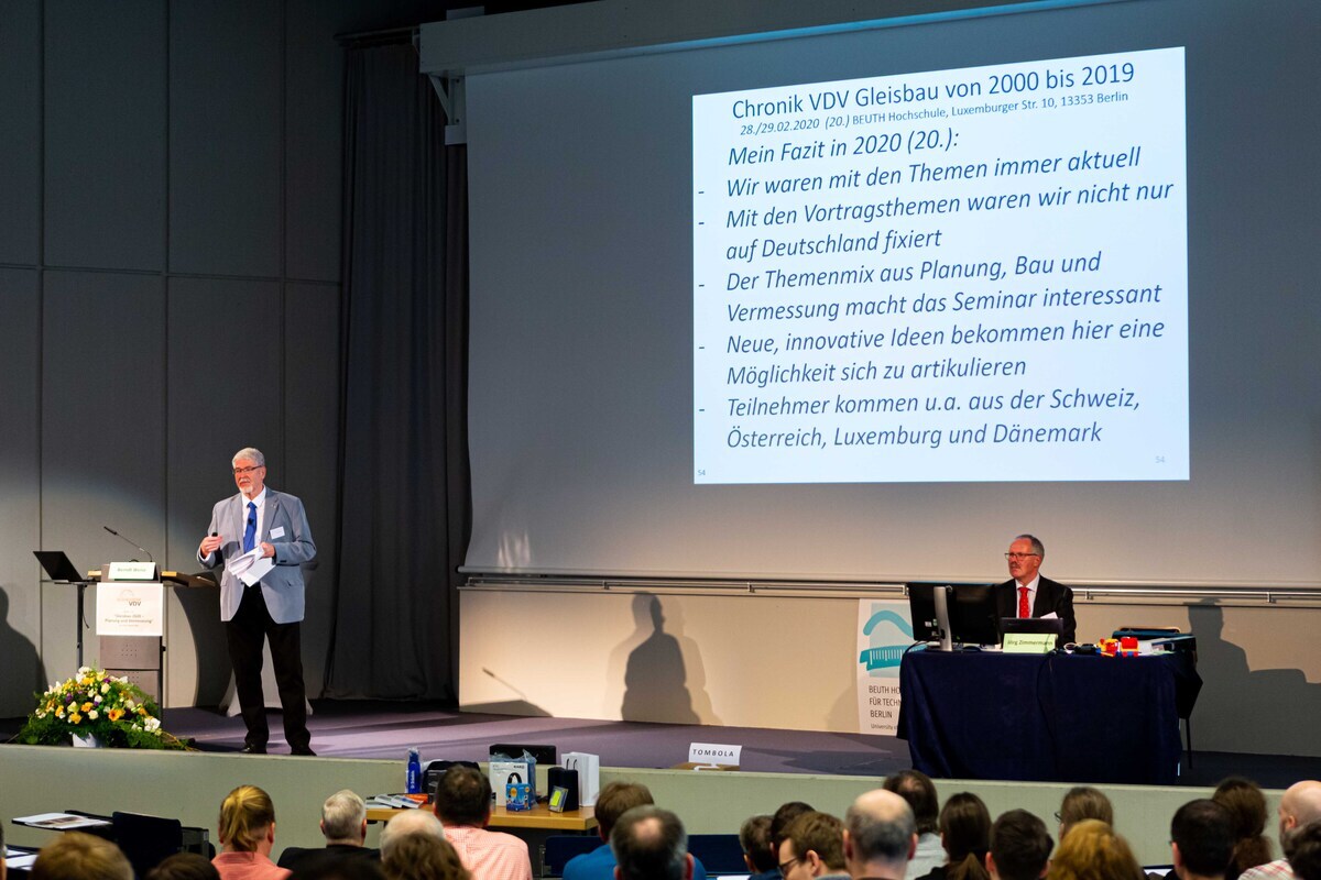 Das BILDUNGSWERK VDV bot 2020 die Seminarreihe VDV Gleisbau Berlin zum 20. Mal an und wieder waren über 240 Fachleute der Einladung in die BEUTH Hochschule für Technik zu kommen gefolgt.