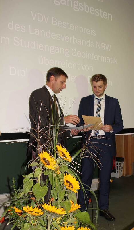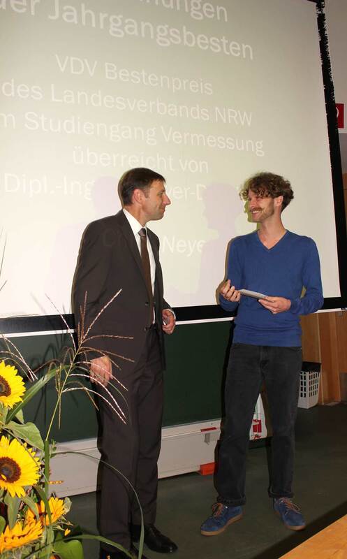 Herr Dipl.-Ing. Ulf Meyer- Dietrich überreichte den VDV-Bestenpreis in der Studienrichtung Vermessung an den Bachelor of Engineering Herrn Christian Neyers. Für den Studiengang Geoinformatik ging der Bestenpreis an Bachelor of Engineering Herrn Christian Danowski.