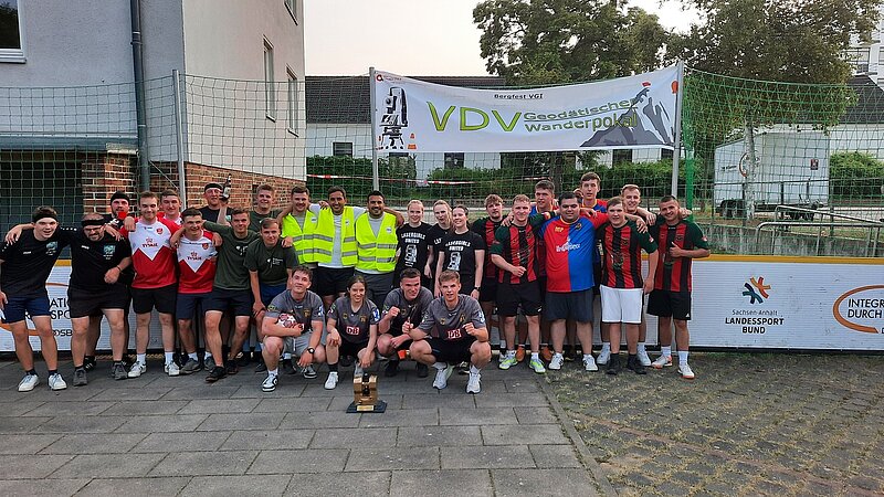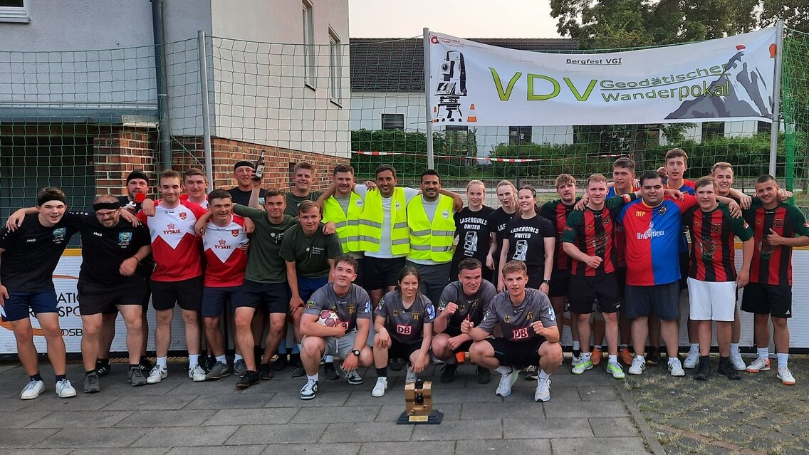 Bereits zum dritten Mal wurde der Geodätische Wanderpokal des VDV an der Hochschule Anhalt in Dessau vergeben. Das beliebte Fußballturnier fand am 03.06.2025 im Rahmen des Bergfestes der Studierenden statt. Die Siegermannschaft erhielt aus den Händen des VDV-Landesvorsitzenden den VDV-Wanderpokal. Der VDV-Wanderpokal und das dazugehörige Fußballturnier ist eine Idee des VDV-Referenten für Studierende Huner Khalil. Auch Herr Khalil ließ es sich nicht nehmen mit der Mannschaft „Geodätischer Dribbeler“ aktiv dabei zu sein. Weitere Mannschaften waren z. B. „Messtrupp Maßlos“ oder auch die „Lasergirls United“.