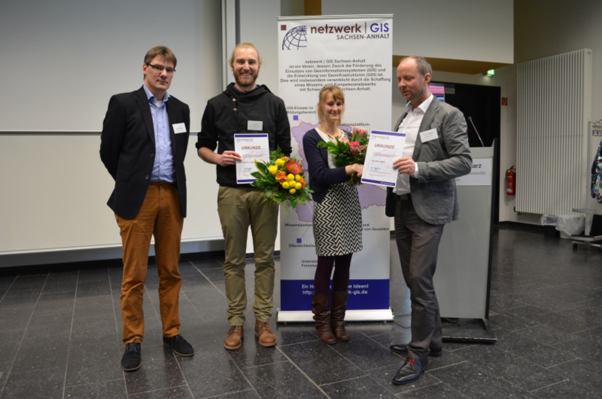 Außerdem hat sich die Jury für einen Sonderpreis (250,00 €) entschieden. Der Sonderpreis für die "Beste Anwendungsarbeit" ging an B.Eng. Ole Badelt für die Arbeit "Ableitung und Kartierung eines Indikators für die Ökosystemdienstleistung CO2-Speicherung - Umsetzung eines Monitoring-Ansatzes in einem Testgebiet Mitteldeutschlands auf der Basis verfügbarer Geodaten". Die Bachelorarbeit wurde im Studiengang Naturschutz und Landschaftsplanung an der Hochschule Anhalt angefertigt.