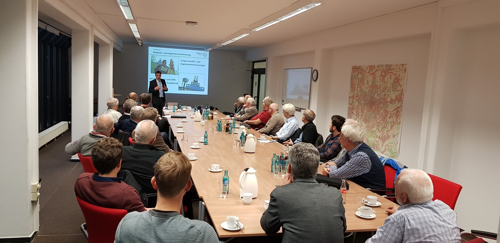 Nach einer kurzen Begrüßung und Vorstellung des VDV als Berufsverband und des Bezirks durch den Bezirksvorsitzenden Guido Baumann ging es direkt in den fachlichen Vortrag. Ausführlich stellte Ulf Meyer-Dietrich das Vermessungs- und Katasteramt, die aktuellen Tätigkeiten als auch das aktuell immer im Thema stehende 3D-Stadtmodell vor. Animationen mit Flügen durch das Stadtmodell mit eingearbeiteten Planungen sorgten für Erstaunen und Anerkennung. So konnte sich das Vermessungs- und Katasteramt als moderne Behörde hervorragend in Szene setzen. Mit 30 Teilnehmern wurde in der Pause und zum Abschluss noch lange über die Geodäsie interdisziplinär diskutiert und viele offene Fragen beantwortet.