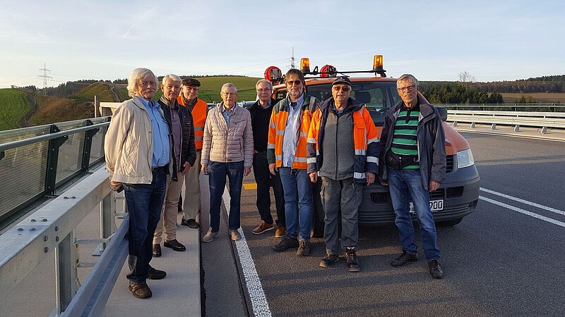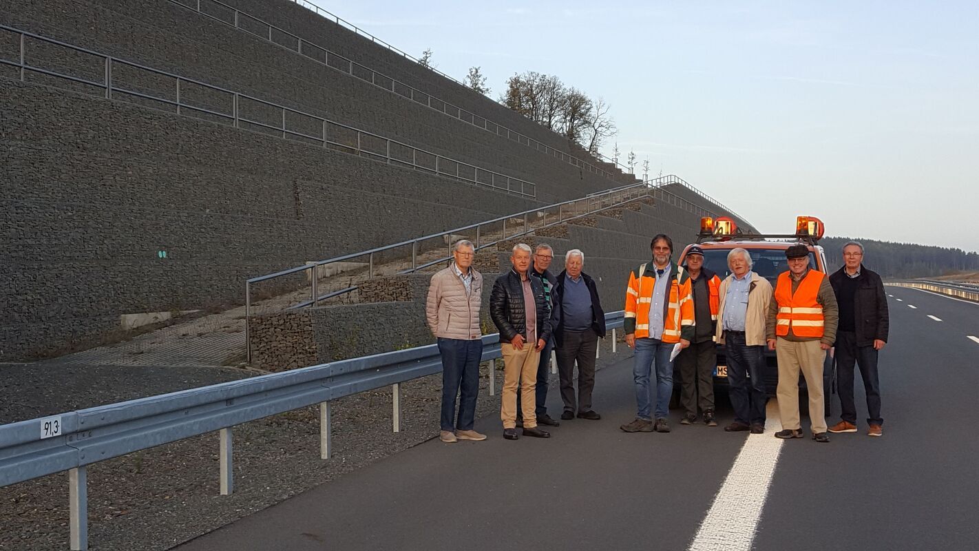 Nachdem schon vor einigen Jahren die Großbrücke Nuttlar im Bau besichtigt worden ist, hat Thorsten Brandt von Straßen.NRW dem VDV-Bezirk Soest noch einmal die Gelegenheit gegeben, sich die nun fertige Autobahn und die Ingenieurbauwerke vor der Eröffnung zeigen und erklären zu lassen.