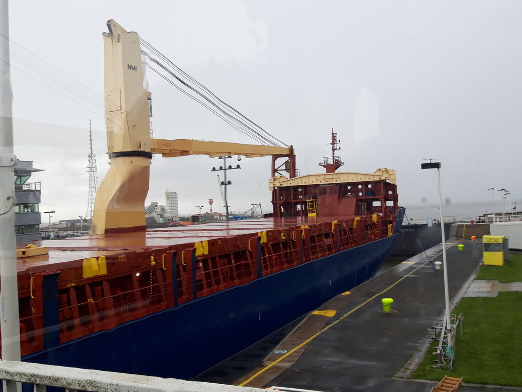 Nach wenigen Schritten hatten wir den Schleusenkanal erreicht und konnten einen regen Schiffsbetrieb beobachten. Ob nun Schüttgutfrachter, Containerschiffe oder Sportboote in der Schleuse warteten, oder gerade anlegten. Beim Gang entlang der Schleusenwand bekamen wir einen Eindruck von der meistbefahrenen künstlichen Wasserstraße der Welt.