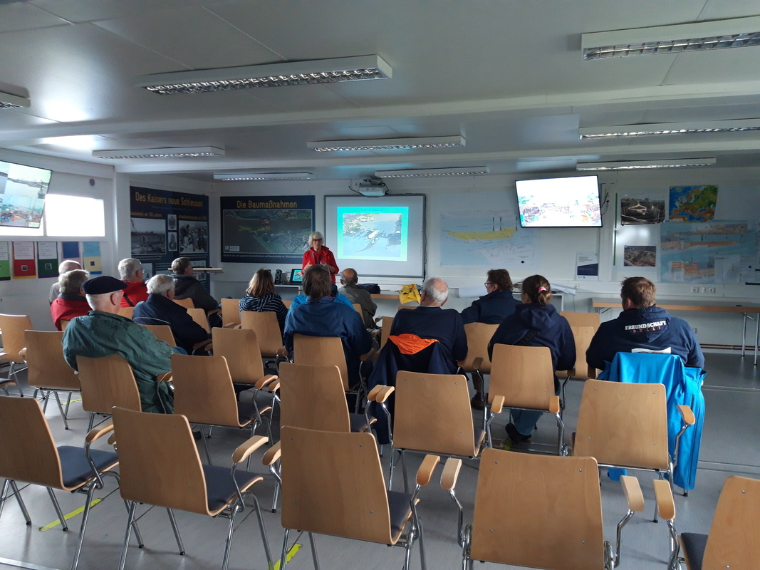 Anhand einer PPP wurden uns die Abläufe im Schiffsverkehr sowie technische Details der Baumaßnahmen, deren aktueller Stand, sowie weitere Planungen sehr anschaulich und leicht verständlich erläutert.
