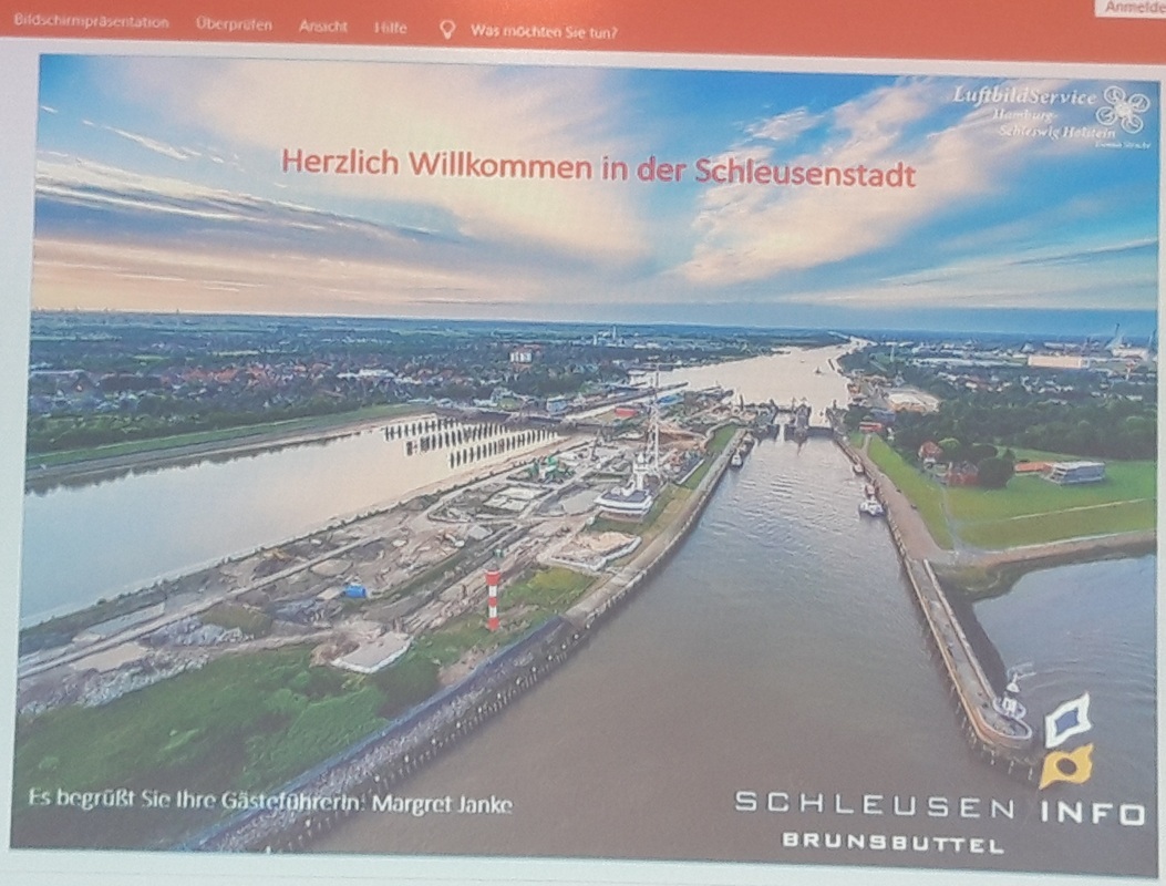 Am Treffpunkt „Kanalmuseum ATRIUM“ wurden wir schon von der Gästeführerin erwartet. Nach einer kurzen Einführung in die Geschichte von Brunsbüttel ging es an die Schleuse.