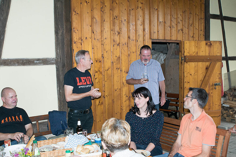 Mit Thüringer Grillspezialitäten vom Rost und selbstgebrautem Bier aus der Museumsbrauerei klang der Freitagnachmittag bei guter Sommerlaune aller Teilnehmer aus. Neben einigen Gästen war auch (beruflicher) Nachwuchs einzelner Mitglieder nach Hohenfelden gekommen.