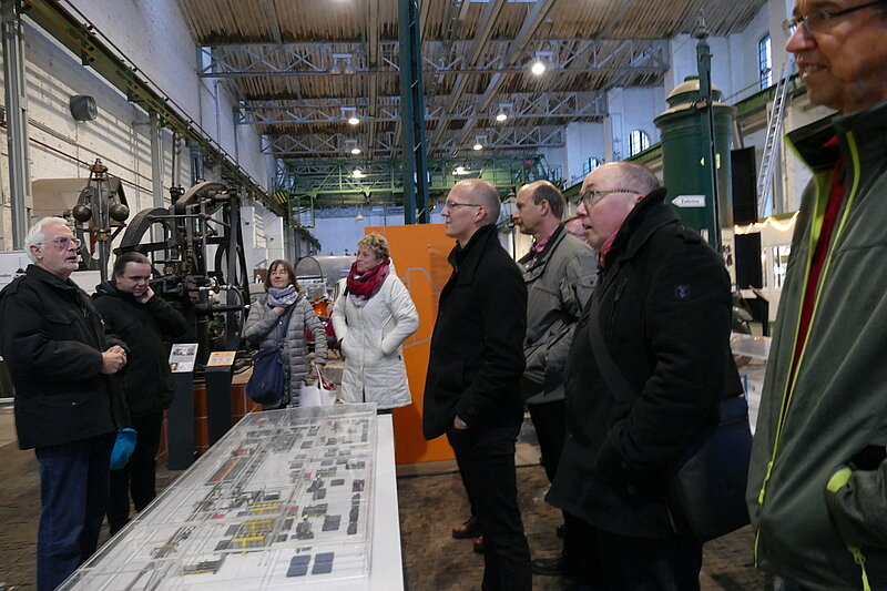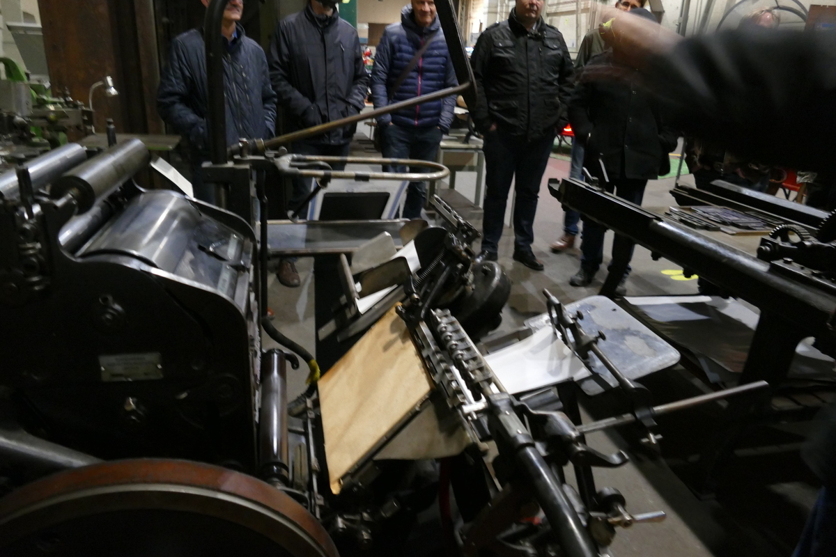 Beeindruckend war auch, dass einige der technischen „Schätze“ sogar in Funktion vorgeführt werden konnten. Die Besucher mit einigen Jahrzehnten Berufserfahrung fühlten zurückversetzt in die beruflichen Anfangsjahre. „Oh ja, auch ich habe vor 30 Jahren an einer Stanze gearbeitet, die über eine schon damals historisch anmutende Transmissionsanlage (Kraftverteilung über Lederriemen zum Antrieb der Arbeitsmaschinen) betrieben wurde.“