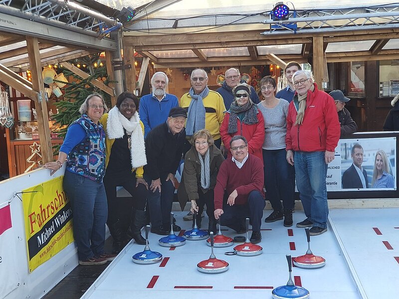 Schon in langer Tradition veranstaltete der Bezirk Köln / Aachen in der Vorweihnachtszeit am 27. November 2019 einen Bezirkstag in der Printenstadt Aachen. Erstmalig begannen wir dieses Treffen am späten Vormittag auf dem Weihnachtsmarkt mit einem vergnüglichen Eisstockschießen. Am Nachmittag besuchten wir die Firmen Kinkartz und Lindt, um dort für die schönste Zeit des Jahres Printen, Spekulatius, Schokolade u.ä. einzukaufen. Nach einen „Glühwein-Zwischenstopp“ auf dem Markt, ließen wir den Tag in einem netten Restaurant in Aachen gemütlich ausklingen. Die zwölf Teilnehmer aus Aachen und Köln waren so begeistert, dass sie sich eine Wiederholung im nächsten Jahr gewünscht haben.