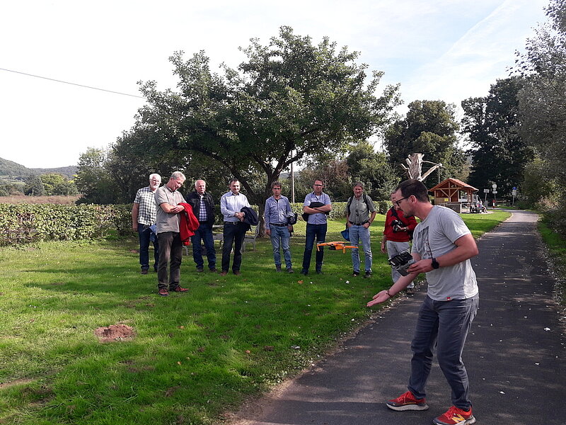Marcus Reichert flog los und erklärte dabei sein Vorgehen. Am Ende bestaunten alle das Ergebnis. Eine informative und kurzweilige Vorführung bei herrlichem Wetter an der Werra.