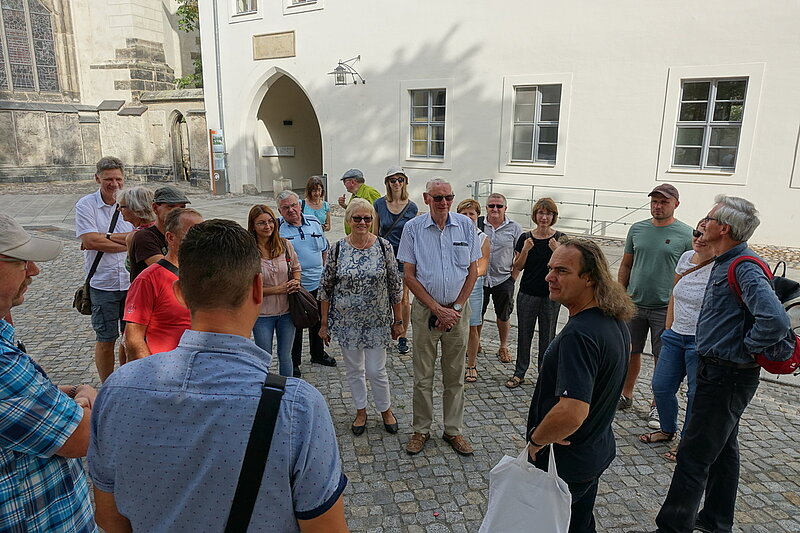 Am 20.09.2018 trafen sich rund 25 Teilnehmer des VDV-Landesverband Sachsen-Anhalt und einige Gäste in der Lutherstadt Wittenberg. Am letzten wirklich heißen Sommertag begann die Stadtführung an der Touristeninformation. Es war eine Freude dem sehr engagierten Guide zu folgen und zuzuhören. So wurde uns von den großen Söhnen der Stadt berichtet und die bekannten Bauwerke erläutert. Allen voran natürlich Martin Luther aber auch Philipp Melanchthon, die beiden Cranachs, Katharina von Bora und Justus Jonas. Die Schlosskirche, die berühmten Höfe und die altehrwürdigen Universitätsgebäude. Gebannt lauschten wir dem Guide der Geschichte wirklich lebendig vortragen konnte.
