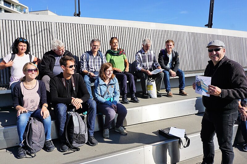 Am Freitagnachmittag startete bei schönstem Ausflugswetter die Exkursion an der U-Bahnhaltestelle HafenCity Universität.