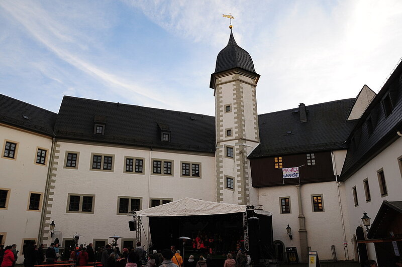 Und die immer noch dichten Wälder in der Umgebung bewogen den sächsischen Herzog Moritz, die Burg von 1545 bis 1547 zu einem Jagdschloss auszubauen zu lassen. Da er 1553 in der Schlacht bei Sievershausen starb, war das eigendliche keine gute Investition. Aber damals plante man noch langfristiger und nicht nur in Legislaturperioden. Nichtsdestotrotz lies sich sein Bruder und Nachfolger im Amt, einige Kilometer nördlich ein ganz neues Schloss, die Augustusburg, errichten. Eigentlich war auch dass keine gute Investition, denn der Baustil war bald außer Mode und das Schloss wurde nicht oft genutzt. Aber zum "Glück" hatte der Bauherr auch nicht alles selbst bezahlt und der Architekt blieb auf einem ganzen Teil der Baukosten, die er vorfinanziert hatte, sitzen.