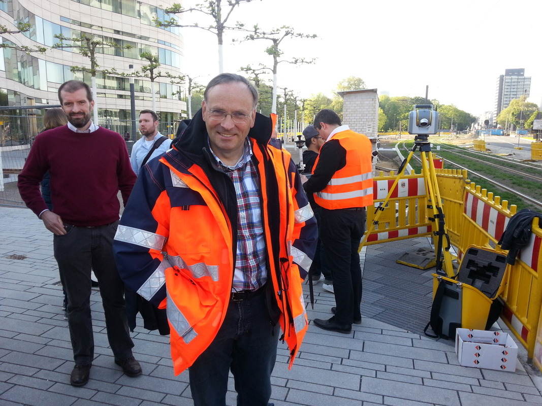 Der VDV-Bezirk Düsseldorf hatte in Kooperation mit unserem Mitglied Sebastian Herzog (Firma HERZOG Systemtechnik) für Mittwoch, den 10. Mai 2017 um 17 Uhr herzlich zu einer Fachexkursion ‚Feldmessung Kö-Bogen‘ in dem neu entstehenden Stadtumfeld in Düsseldorf eingeladen. Der Besprechungsraum der ‚Bauoberleitung Wehrhahnlinie‘ war als Treffpunkt durch fünfzehn Mitglieder und fünf Gäste gut gefüllt, darunter Auszubildende und Beamtinnen, die vor kurzem ihre Anwärterzeit abgeschlossen haben.