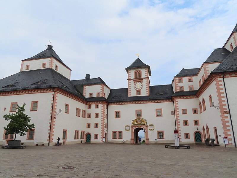Weiter führte uns der markierte Weg zur Stadt und Burg Wolkenstein mit Eisenbahn-Hotel der Deutschen Reichsbahn. Weiter an nahegelegenen Attraktionen wie die Burg Scharfenstein (mit Verbindung zu dem erzgebirgischen Volksheld Karl Stülpner), gelangten wir zur Flussnamen prägenden Stadt Zschopau. Unser 1. Tagesziel war Augustusburg mit dem gleichnamigen Renaissanceschloss, eines der schönsten in Mitteleuropa, hoch oben über dem Tal auf einem Felsplateau in 516 m Meereshöhe. In der Jugendherberge auf dem Schlossgelände erhielten wir Unterkunft und morgendliche Verpflegung und dies trotz unseres Durchschnittsalters von 57 Jahren.