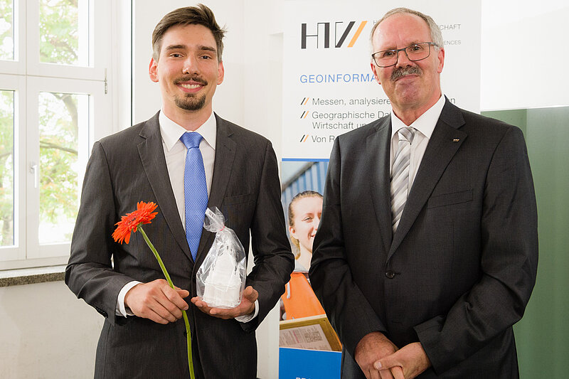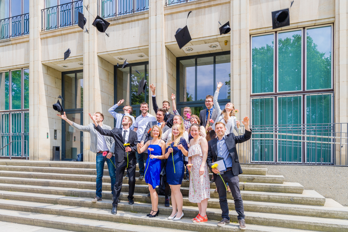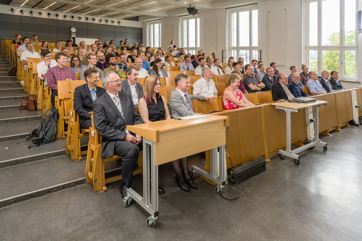 Wie schon in den letzten Jahren fand auch 2018 wieder die traditionelle Absolventenverabschiedung statt. Eingeladen hatte der Dekan alle Absolventen, die seit Sommer 2017 ihr Studium erfolgreich beendet hatten. Dabei wurden verschiedene Preise zur Würdigung der besten Studienleistungen übergeben. Die Auszeichnung des Jahrgangsbesten wird auf der feierlichen Immatrikulation der Erstsemester am 4. Oktober erfolgen. Im Rahmen der Veranstaltung am 15.06.2018 konnten fünf Absolventinnen bzw. Absolventen für hervorragende Leistungen im Studium mit Preisen, gestiftet durch die Firmen Trimble Deutschland GmbH, Raunheim, die epeg Energieplanung, Brandis, die Fa. GDM Geodatenservice Radebeul sowie den DVW, gewürdigt werden. Aber auch alle weiteren Absolventinnen bzw. Absolventen wurden feierlich aus dem Studium verabschiedet. Bei den anschließenden Gesprächen gab es einen regen Gedankenaustausch in lockerer Runde zwischen den Absolventinnen/Absolventen und den Hochschullehrern/Mitarbeitern der Fakultät. Ein herzlicher Dank gilt an dieser Stelle den Sponsoren (BDVI Sachsen, DVW Sachsen, DGfK (Sektion Dresden) und VDV Sachsen) für die Unterstützung (Abb. 1 bis 4).