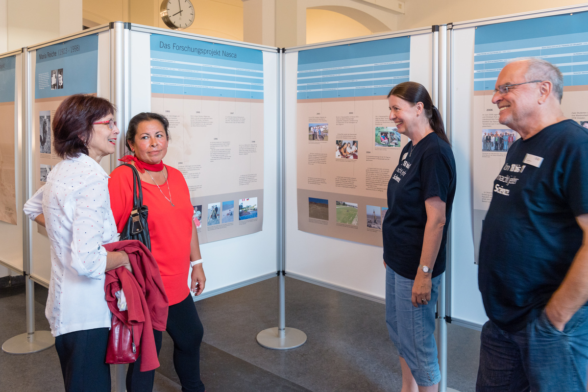 Zweites Event an diesem Tag war die nunmehr bereits 16. Dresdner Lange Nacht der Wissenschaften (LNDW). Unter dem Motto „Von 18 bis 1 macht jeder Science!“ konnten die Besucherinnen und Besucher den Wissenschaftsstandort Dresden erleben. Wissenswertes, Unterhaltsames und manch Erstaunliches aus Forschung und Lehre (wie es in der Pressemitteilung der HTW heißt) wurden in insgesamt 730 Programmpunkten präsentiert. Dazu gehörten an der HTW Dresden auch Beiträge aus unserer Fakultät. Prof. Teichert und Frau Richter, M.Sc., stellten in ihren beiden spannenden Vorträgen und in einer Ausstellung „Das Nascaprojekt - 22 Jahre deutsch-tschechische Forschung in Peru“ (Abb. 5) die aktuelle Entwicklung beim „Abenteuer Nasca“ vor. In den Vorträgen wurden die Zuhörer einerseits auf die Spuren von Maria Reiche geführt und andererseits mit den Herausforderungen bei den Vermessungsarbeiten in der Wüste Perus vertraut gemacht. Die LNDW war dank der lauen Frühsommernacht gut besucht.