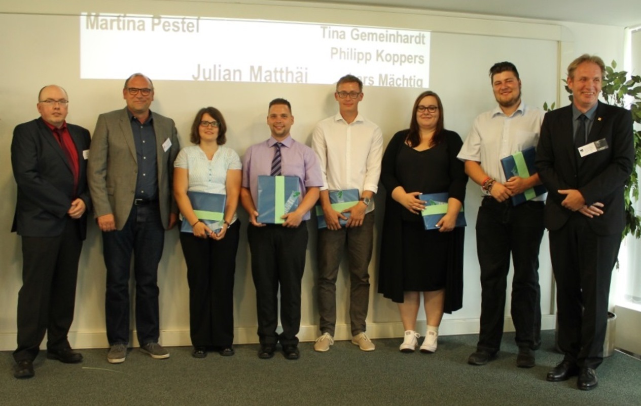 Umso erfreulicher ist es das am 29.07.2016 wieder 15 Absolventen (davon 9 Vermessungstechniker und 6 Geomatiker) ihre Abschlusszeugnisse erhielten. Es ist vielleicht der rechte Moment festzustellen, dass die ‚Talsohle‘ der Berufsausbildung in Sachsen-Anhalt durchschritten ist. Die Berufsverbände freuen wieder einmal junge Kolleginnen und Kollegen in unserem Berufsstand zum erfolgreichen Abschluss ihrer Berufsausbildung zu beglückwünschen. Die besten drei Absolventen erhielten Buchpreise. Dieses Mal gab sogar drei 3. Plätze mit jeweils exakt gleicher Punktzahl. Das Programm der Feierstunde war wie immer sehr abwechslungsreich. Für die seit Jahren gute Organisation der Veranstaltungen danke ich unserer VDV-Kollegin Carola Wille von der Zuständigen Stelle.
