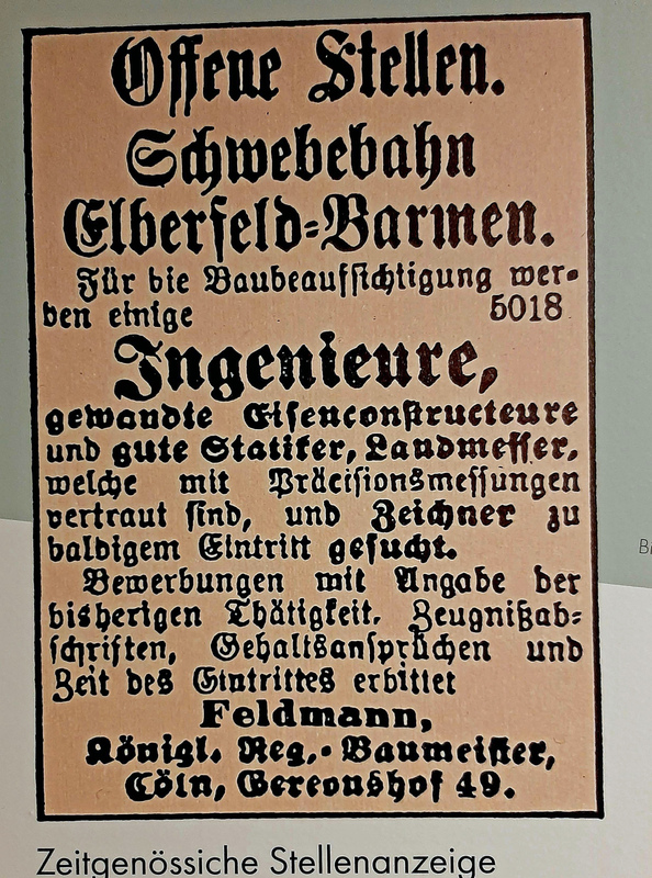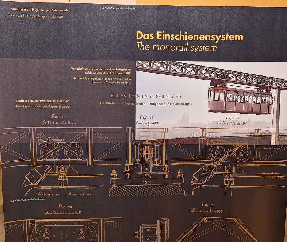 Den meisten Besuchern ist der Name des „Erfinders“ Eugen Langen wahrscheinlich ein Begriff. Dass die Schwebahn aber im Jahr 1896 ausschließlich auf dem Schwebebahn-Testgelände der Waggonfabrik „Van der Typen & Charlier“ in Köln-Deutz fuhr und dort nie in den Echtbetrieb ging, wissen die wenigsten. Die Schwebahn sollte sogar in Dresden und in Wien fahren, das Konzept und die Durchführung fand aber ausschließlich in Wuppertal statt. Im Sommer 1898 wurde in Wuppertal mit dem Bau der Schwebebahnanlage begonnen. Die 1. Probefahrt fand am 05.12.1898, die 2. am 04.03.1899 statt. Am 24.10.1900 fuhr Kaiser Wilhelm II mit seiner Gemahlin Auguste Viktoria und seinem Gefolge von Döppersberg (Elberfeld-Mitte) bis Vohwinkel. Die Freigabe für den öffentlichen Fahrgastverkehr mit dem Abschnitt Station „Kluse“ zur Station „Zoo“ am 01.03.1901 gilt als offizielle Betriebseröffnung. Die Nennung der Ereignisse in den folgenden Jahrzehnten würde hier den Rahmen sprengen, aber erwähnenswert ist aus jüngster Zeit der Neubau (Austausch der Brücken und Stützen und Neubau fast aller Bahnhöfe) des gesamten 13,3 km langen Fahrweges in dem Zeitraum April 1995 bis April 2014. Für das neue Gerüst und die Bahnhöfe wurden im Laufe der Jahre rund 40 000 Tonnen Stahl verbaut.