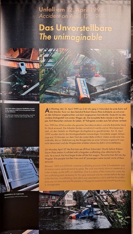 Da das ursprüngliche Erscheinungsbild der Konstruktion erhalten werden sollte, nutzten die WSW (Wuppertaler Stadtwerke) die alte Niettechnik, um die Bauteile am Gerüst zu verbinden. Über 2,5 Millionen Nieten geben der Schwebebahn auch heute noch Stabilität. Mit dem Schwebebahnausbau ist leider auch das schlimmste Unglück in der über 100-Jährigen Schwebebahngeschichte verknüpft. Nach Beendigung von nächtlichen Arbeiten am Gerüst war ein Metallstück am Fahrschienenträger von der Baufirma nicht entfernt worden. Der erste Zug in Richtung Oberbarmen fuhr am Morgen des 12. April 1999 auf die „Kralle“ auf und stürzte in die Wupper. Bei dem Unglück verloren 5 Fahrgäste ihr Leben, 47 wurden verletzt. Erst am 9. Juni 1999 wurde der Fahrbetrieb wieder aufgenommen. Heute fahren täglich über 80.000 Fahrgäste mit der Schwebebahn. Von 11/2015 an wurde die „alte“ Flotte der Baureihe 1972 sukzessive durch Züge der neuen Generation 15 ausgetauscht.