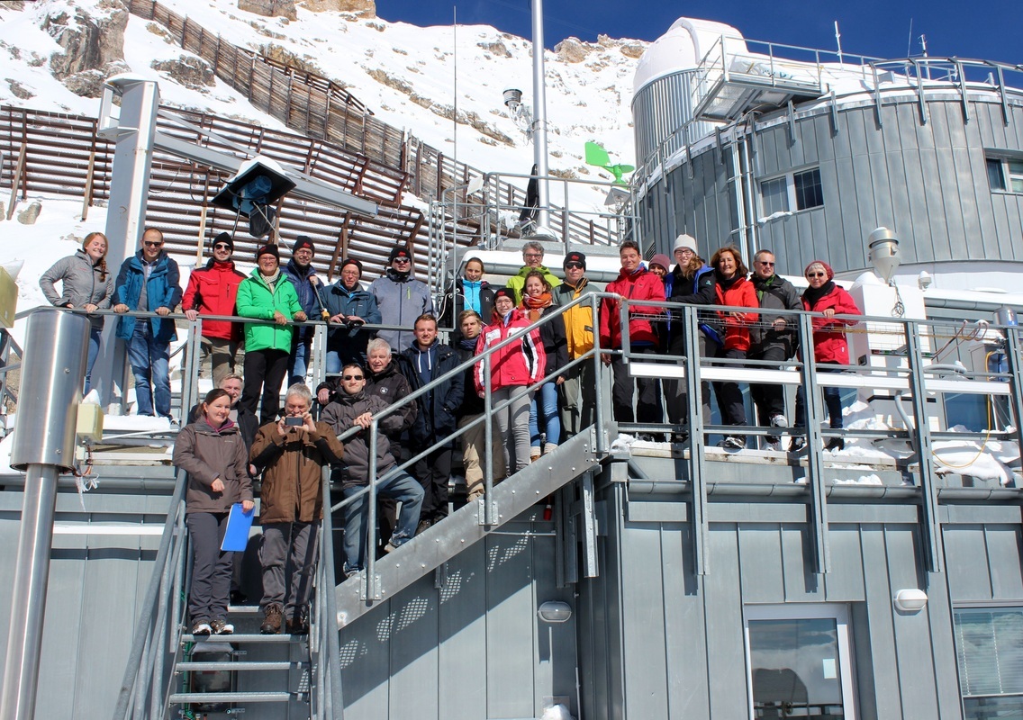 Am 07.10.2017 ging es hoch hinaus, denn der Bezirk München veranstaltete eine Exkursion auf die Zugspitze. Im Fokus stand dabei der Besuch der Umweltforschungsstation „Schneefernerhaus“ mit einem Fachvortrag über die dortigen Schwerefeldmessungen und der Begehung des Kammstollens. Doch auch die Liebhaber der „klassischen“ Geodäsie kamen beim anschließenden Vortrag über die Vermessungsarbeiten beim Neubau der Zugspitzbahn und der Baustellenbesichtigung an der Bergstation auf ihre Kosten.