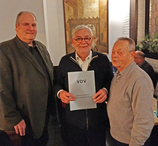 Gestärkt von einem Gläschen Glühwein genossen wir die Marktstände auf Heumarkt und Alter Markt. Zur Jubilarehrung kehrten wir in das Brauhaus Sion ein. Hier erhielt Herbert Pump die Auszeichnung für seine 50-jährige Mitgliedschaft im VDV. Seit vielen Jahren ist Herbert Pump auch als Beisitzer im erweiterten Bezirksvorstand tätig und konnte uns aus seinen vielen VDV-Jahren einiges erzählen.