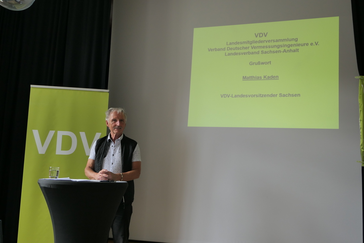 Ab 15 Uhr begann dann die 18. Landesmitgliederversammlung des VDV-Landesverbandes Sachsen-Anhalt. Aus terminlichen Gründen konnte leider niemand aus dem VDV-Präsidium teilnehmen. Der Ehrenlandesvorsitzende Karl-Heinz Winkler war leider auch verhindert. Um so mehr freute es den Landesvorsitzenden Matthias Kaden ebenfalls Landesvorsitzender aus Sachsen als Ehrengast begrüßen zu können. „Er eilte hier zu uns aus Sachsen ohne Anhalt“ kommentierte der Landesvorsitzende aus Sachsen-Anhalt erfreut den Besuch in seiner Eröffnungsrede. Matthias Kaden sprach ein kurzes Grußwort in dem er auf die traditionelle gute Zusammenarbeit der beiden VDV-Landesverbände einging.