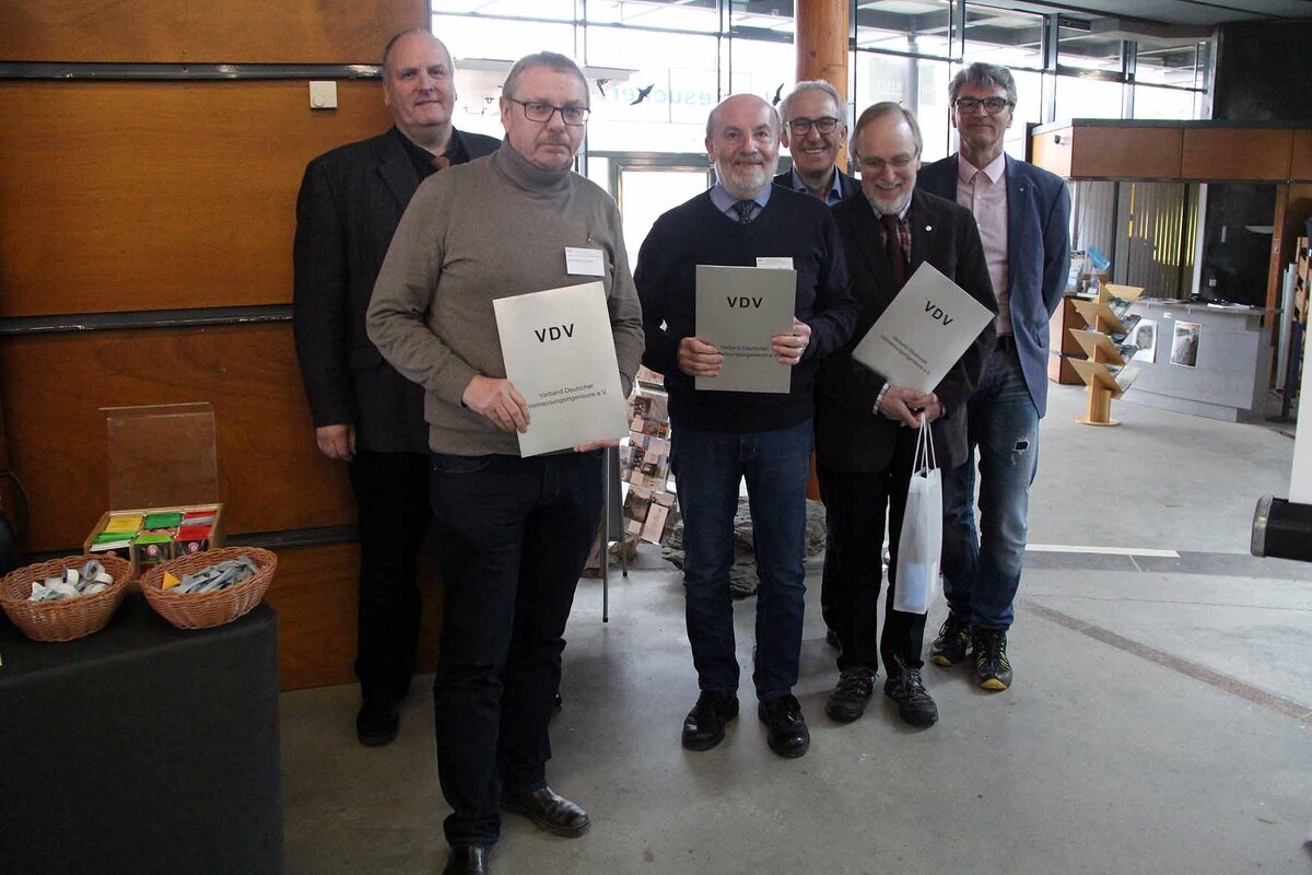 Währenddessen folgten die VDV-Mitglieder dem Fachvortrag und der anschließenden Mitgliederversammlung. Der bisherige Vorstand wurde entlastet. In der Teilwahl des neuen Vorstandes wurden Elmar Neuroth und Steffi Behr in ihren Funktionen als stellvertretender Landesvorsitzender und Schatzmeisterin bestätigt. Florian Thiery schied nach 2 Jahren wegen seines beruflichen Wechsels aus seiner Funktion als Hochschulreferent aus. Leider konnte bis dato noch kein/e Nachfolger/in gefunden werden, so dass die Funktion im Moment unbesetzt bleiben musste. Der neue Landesvorstand setzt sich somit wie folgt zusammen: