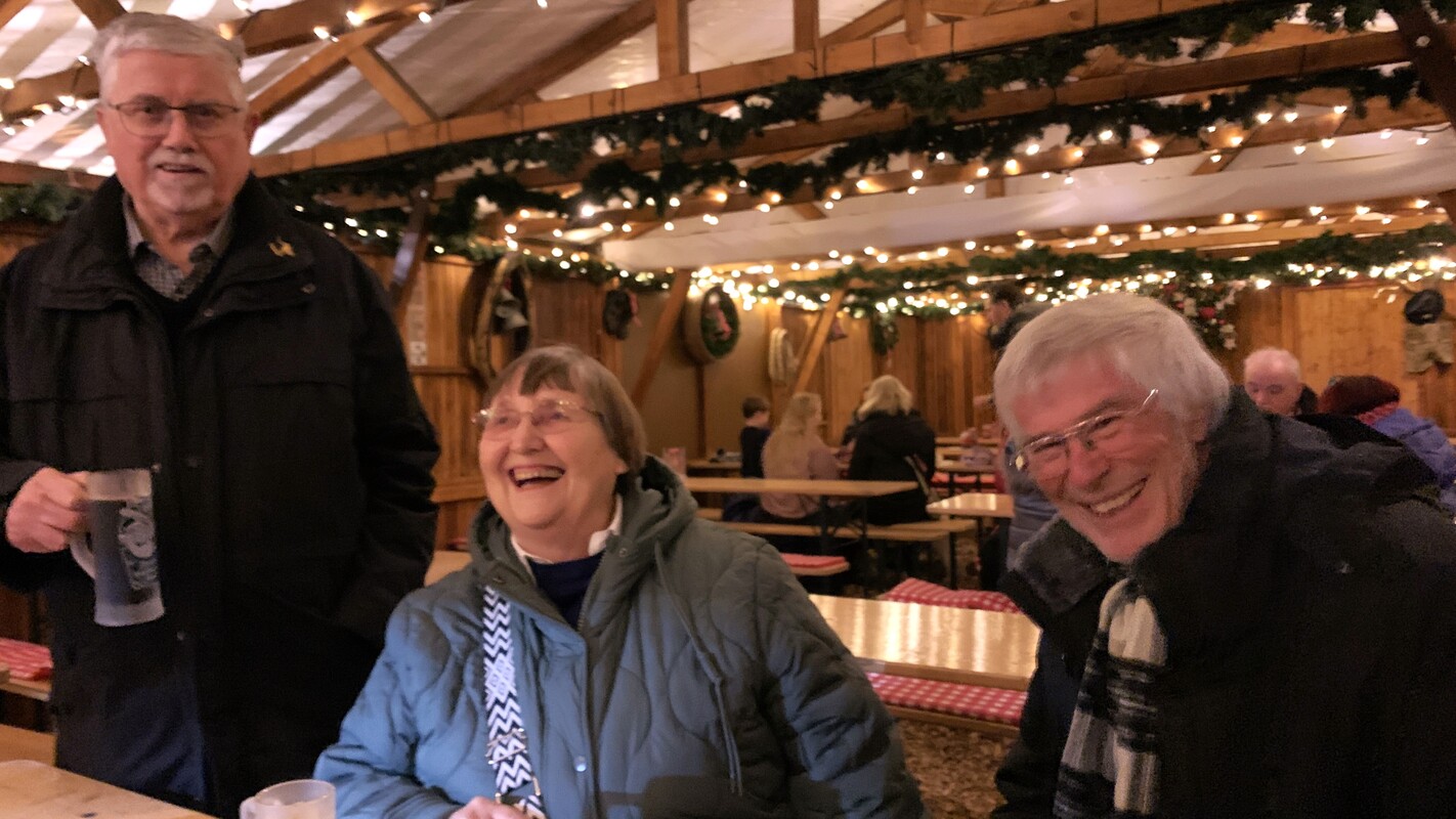 Da das Wetter wieder einmal etwas ungemütlich war, wurde für den Pflichttrunk zügig das Glühweinzelt angesteuert. Den kulinarischen Abschluss bot anschließend auf hohem Niveau die Marktschänke. Bei lebhaften Gesprächen und bester Stimmung verging die Zeit wie im Flug und man musste aufpassen, die unflexiblen Parkhaus-Schließzeiten nicht zu verpassen.