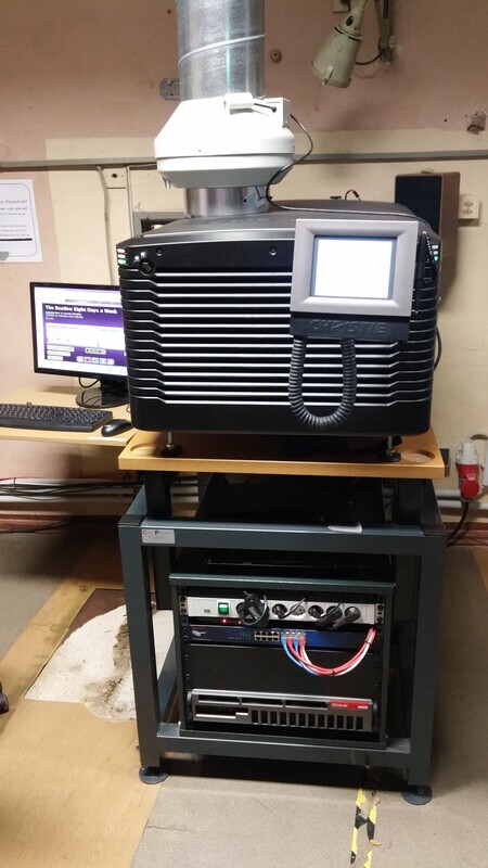 Zum Ausklang des Abends wechselten wir in das historische Burg Theater, dem ältesten und bis heute durchgängig betriebenen Kino-Zweckbau Deutschlands. Ein kurzer Blick in den Vorführraum begeisterte die Technikinteressierten. Hautnah zu erleben war hier die Entwicklung bei den Filmprojektoren. Neben einem „modernen“ Projektor, welcher die Filme von Festplatten abspielt steht hier auch noch ein „historischer“ Projektor mit welchem die altbekannten Filmrollen abgespielt werden können. Aber auch die Software mit der der Ablauf eines gesamten Filmabends geplant wird, konnten wir uns anschauen. Hiermit kann im Detail festgelegt werden in welcher Reihenfolge welche Werbung läuft, welche Pausenzeiten notwendig sind und natürlich auch wann der Hauptfilm anläuft. Den mit dieser Software geplanten Ablauf eines Filmabends konnten gleich wir im Anschluss, gemütlich mit einem Getränk in der Kinobar sitzend, begutachten. Mit einem Portrait der Beatles über ihren Aufstieg zur Musiklegende in den 60´er Jahren („The Beatles: Eight Days a Week - The Touring Years“) ließen wir den Abend dort ausklingen.