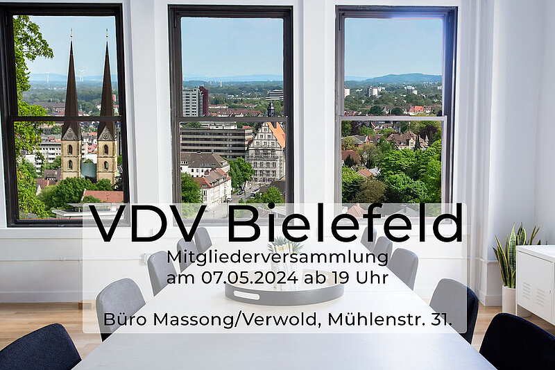Satzungsgemäß lädt der VDV-Bezirk Bielefeld hiermit seine Mitglieder zur ordentlichen Mitgliederversammlung mit Vorstandswahl ein.