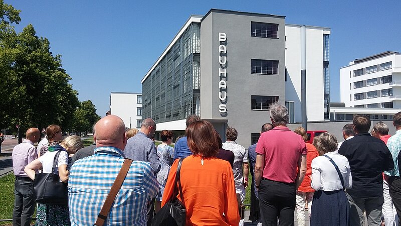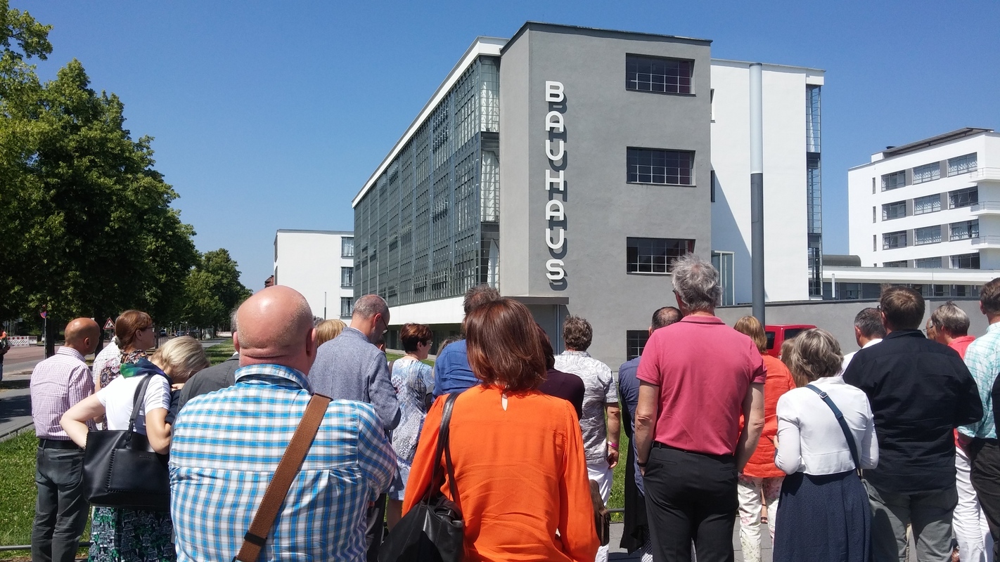 Schon lange war man nicht mehr im Zeitplan trotzdem fand am Nachmittag – nach einem kurzen Mittagsimbiss - das wirklich reichhaltige Besuchsprogramm in Dessau statt. Der Vorplatz der UBA glich einem Busbahnhof als die völlig ausgebuchten Fahrten zu bekannten Zielen in der Stadt starteten.