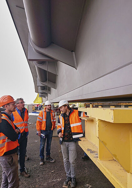 Christian Liebig, der verantwortliche Projektleiter von Donges SteelTec GmbH aus Darmstadt, gab im Anschluss Auskunft zum Stahlbau und dem Aufbau der Brücke vor Ort.
