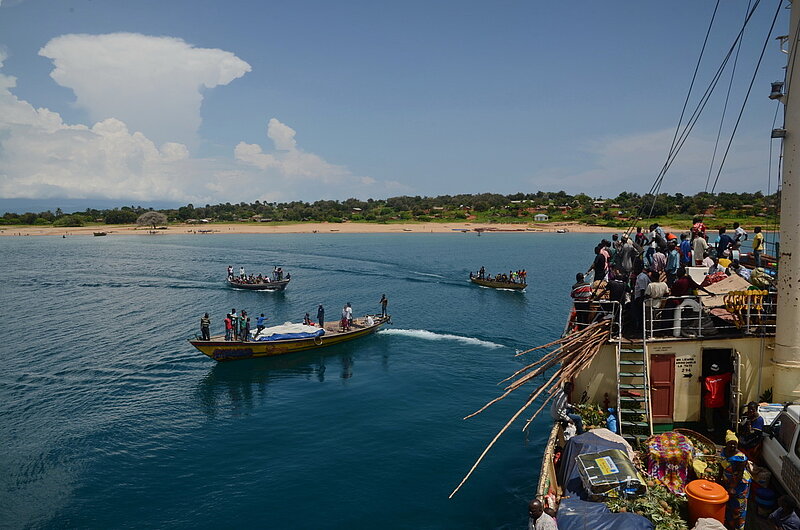 Die nächsten 800 km wurden an Bord des ältesten Passagierschiffs der Welt, der Liemba, bezwungen. Die Liemba, hat eine lange Geschichte und wurde in Papenburg 1913 unter dem Namen Goetzen gebaut. Ursprünglich sollte es Waren in die ehemalige Kolonie Deutsch-Ostafrika transportieren. Das Schiff wurde beim Bau in Papenburg aber nur testweise verschraubt und dann zum Transport, per Bahn nach Hamburg, in 5000 Kisten verpackt. Dort ging es mit dem Schiff nach Dar es Salaam und weiter 1500 km über Land nach Kigoma um dort dann endlich fertig gestellt zu werden. Ich empfehle eine Google-Suche um das Thema zu vertiefen. Die deutschen Spuren der damaligen Kolonie sind an vielen Stellen noch zu entdecken. Ziel der 800 km Seefahrt war das südlich Ende des Sees in Sambia.