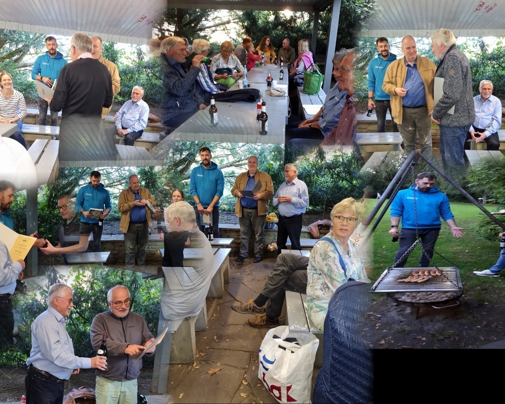 Nach dem offiziellen Teil konnte sich Christian Landers als Grillmeister bewähren. In gemütlicher Runde, gut versorgt mit Speisen und Getränken, genossen die Teilnehmer*innen einen schönen sonnigen Herbsttag. Alle waren sich einig, dass den Organisatoren Dank und ein besonders Lob gebührt für eine gelungene Veranstaltung zum perfekten Zeitpunkt.