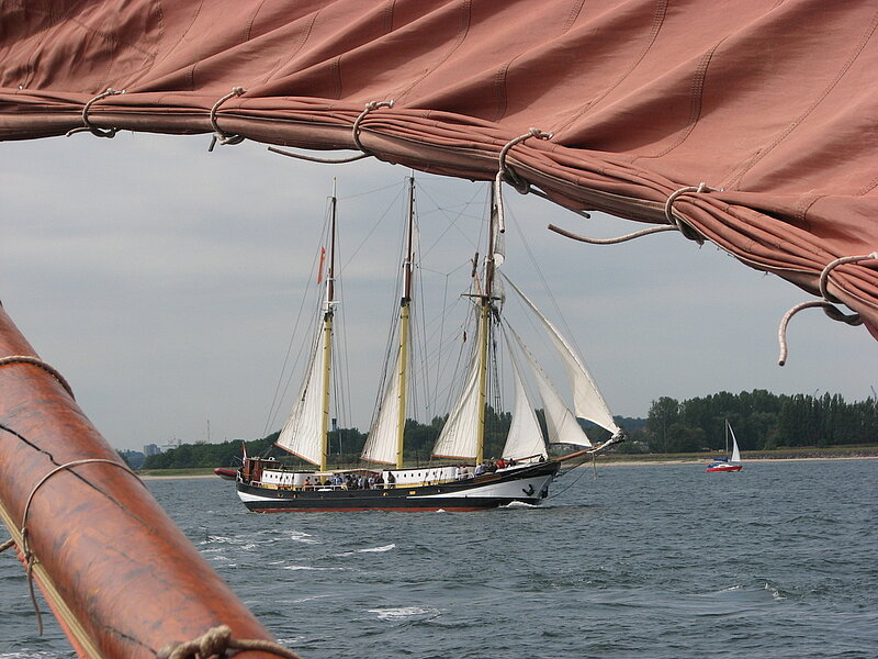 Wie immer wurden die Segel gesetzt und die Mithilfe der Mitsegler war gefragt. Unser Schiff die De Albertha ist ein holländischer Grachtensegler und über 100 Jahre alt. Neben dem Panorama der Kieler Förde konnten auch eine große Anzahl von Traditionsschiffen bestaunt werden.