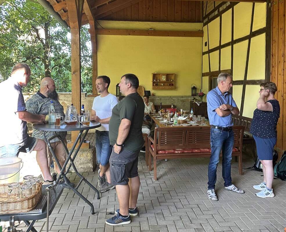Zu dem Sommerfest in dem Hofgarten von Vorstandsmitglied Dipl.-Ing. Falko Hüter waren, wie schon in den Zeiten vor der „Corona-Pause“, wieder zahlreiche Verbandsmitglieder, teils auch mit ihren Familien, angereist. Bei schönstem Sommerwetter wurde der Rost schon angeheizt während der Landesvorsitzende Dipl.-Ing. Gerald Heilwagen über die maßgeblichen Themen des Berufsverbandes aus dem letzten Jahr berichtete. Dabei ging er ein auf berufspolitische Themen aus Thüringen, wie die Umstrukturierungen des Thüringer Landesamtes für Bodenmanagement und Geoinformation (TLBG), auf Stellungnahmen zu verschiedenen Gesetzentwürfen, und auch auf aktuelle Themen aus der VDV-Bundesarbeit. Abschließend gab er auch noch einen Ausblick auf verschiedene kommende Termine und Veranstaltungen und begrüßte die neuen VDV-Mitglieder in Thüringen, die zum Sommerfest erschienen waren.