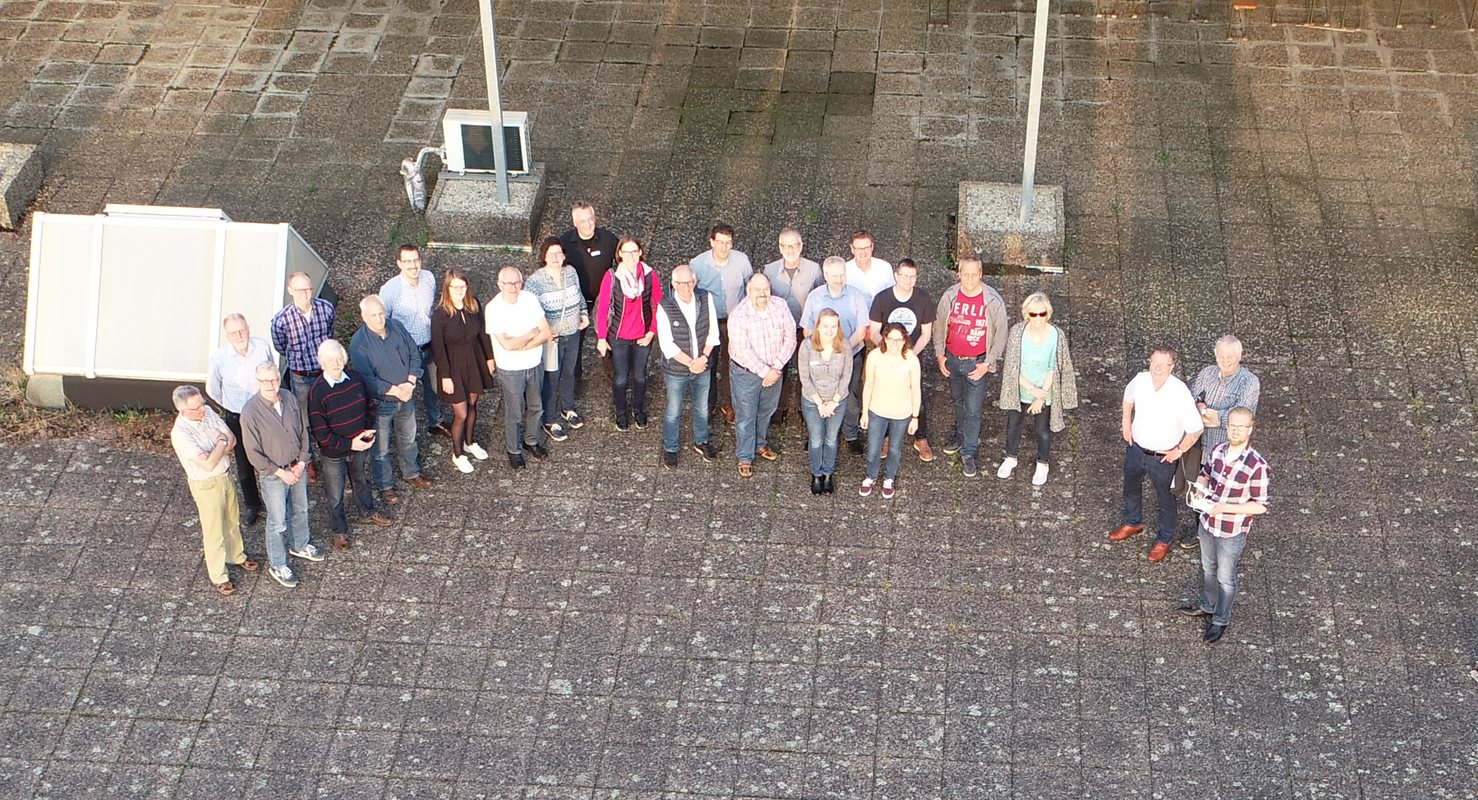 Nach einer kurzen Vorstellungsrunde gab Herr Brodowski von der Stadt Paderborn einen Überblick über die für den Abend geplanten Themen, anschließend ging es direkt raus auf die Dachterrasse. Bei schönstem Wetter startete Herr Nagel, ebenfalls von der Stadt Paderborn, die stadteigene Drohne um Aufnahmen des Parkplatzes vom Rathaus zu machen. Natürlich durfte ein von der Drohne erzeugtes Gruppenbild nicht fehlen. Im weiteren Verlauf des Abends stellten Herr Brodowski und seine Kolleginnen Frau Nowak und Frau Koch Einsatzbereiche und Erfassungsmethoden von/für 3-D-Präsentationen vor. Dreidimensionale Modelle sind vielfältig einsetzbar u. A. in den Bereichen Vermessung, Stadtplanung und Hochwasserschutz. Mit ihrer Hilfe können nicht nur vorhandene oder geplante Situationen visualisiert werden, sondern auch Analysen (z. B. Sichtanalysen) durchgeführt oder Szenarien (z. B. Brandbekämpfung, Nachstellung des Schulwegs) dargestellt werden.