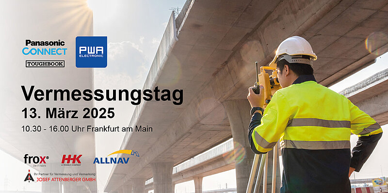 Am Donnerstag, den 13. März 2025, findet in Frankfurt am Main der Vermessungstag von Panasonic und PWA Electronic statt. Die Besucher erwartet ein spannendes Programm mit praxisnahen Vorträgen zu Hardware, Software, Zubehör und Services für die Vermessung. Themen wie digitale Feldbücher, präzise Vermessungstechnologien, robuste IT-Hardware und hilfreiche Tools für den Arbeitsalltag stehen im Mittelpunkt.